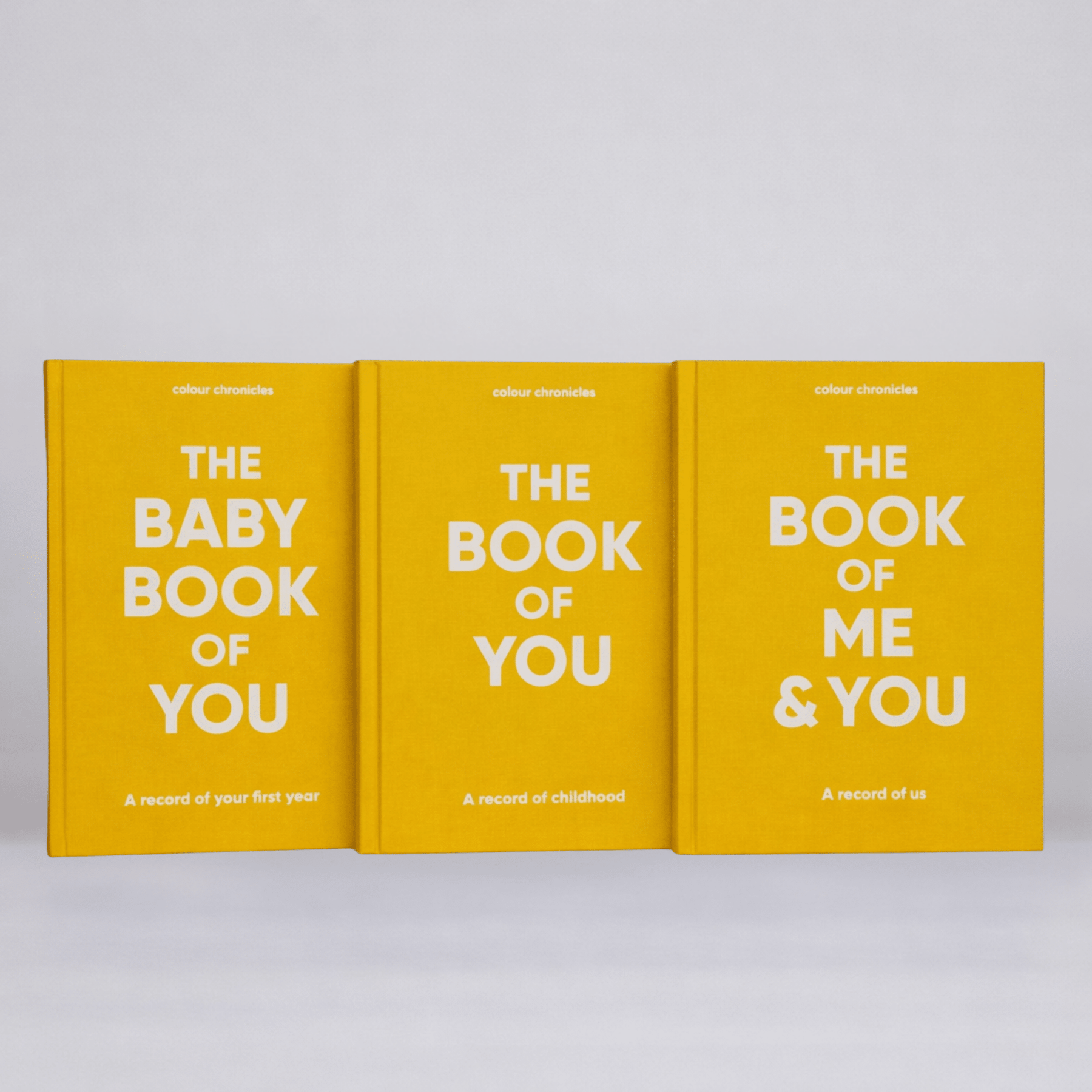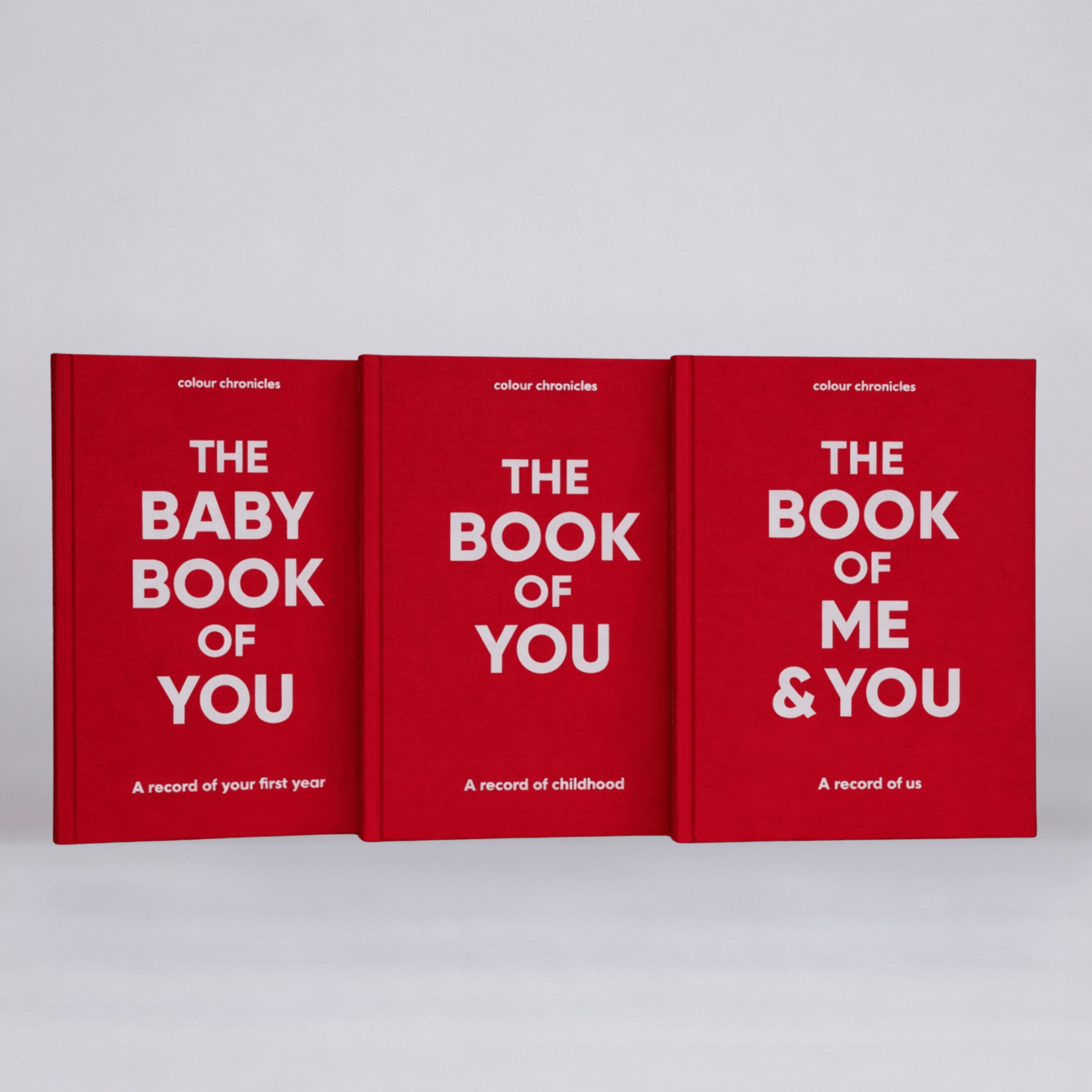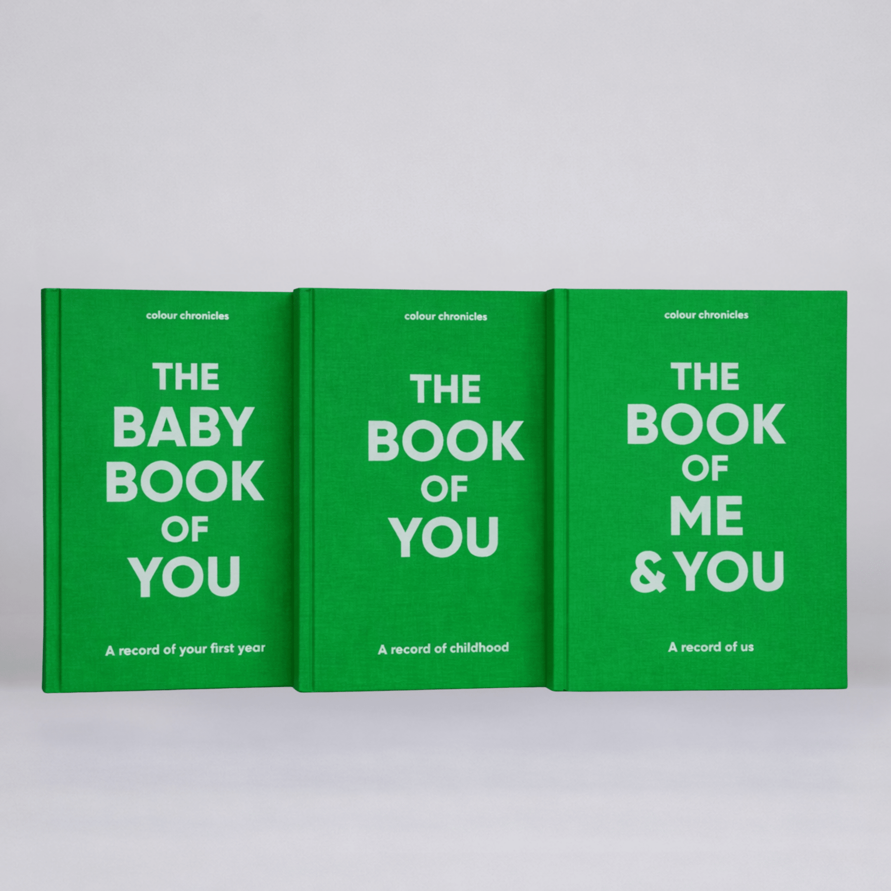 Capture the whole story of childhood — and the relationship that surrounds it — with the Colour Chronicles Memory Book Trio, combining The Baby Book of You, The Book of You and The Book of Me & You to create a beautiful, complete record from the very first days of life, through childhood, and into shared reflection together.